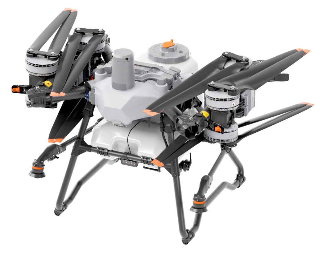 El T100 viene equipado con un tanque de 100 L y aspersores centrífugos de atomización dual, lo que permite velocidades de vuelo más rápidas, una cobertura de pulverización más amplia y una mayor eficiencia operativa para aplicaciones agrícolas a gran escala.